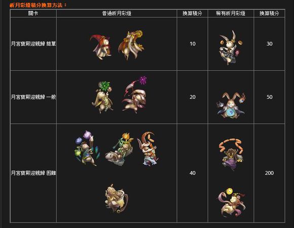 圆月之夜,月宫宝殿正在准备盛大宴会迎接「月宫圣后 ‧ 嫦娥」归来!活动期间进入『圆月宴会』关卡,将有机会获得祈月彩灯,每款彩灯代表不同的公会积分;达到指定积分及成功集齐 12 款彩灯,更可得到终极大奖 – 「月宫圣后 ‧ 嫦娥」 1 只 (技能等级为 MAX)!