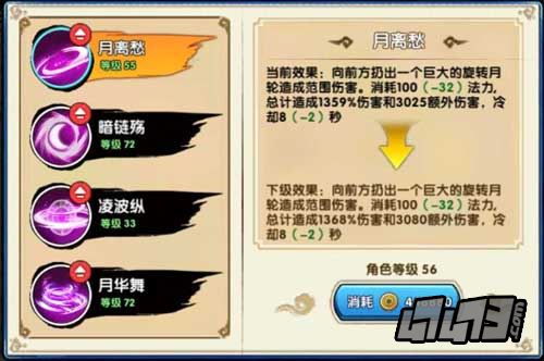 从技能数据可以看出,这个技能拥有不错的伤害而且冷却时间短。此技能虽然不能像其他两个职业那样大距离位移,不过却是走位时必不可少的技能。使用凌波纵技技能的时候有一个小技巧哟,凌波纵技能使用过后,会在原地扔出一个月轮并后跳。这个时候就可以将怪物引导月轮处,进而对怪物造成伤害。此技能是灵活性非常强的技能,技能使角色产生的后跳,不仅可以躲过敌方的技能攻击,也可以对敌方造成伤害。这个技能在历练副本中,面对大批围困的怪物或者在BOSS战的时候,甚至在仙剑大会等副本作战中,都是一个不错的选择呢。