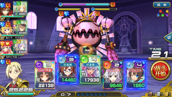 在这里说一下,我不是吹四季,四季在这个BOSS真的是很有用,但又很无用,有用在哪里:有用在于如果你3C抽到了她,直接丢,不用想,这样4C上魔防,4C减防的时候无论减什么防,到5C你至少还有一层魔盾,或者一层物盾,极大减轻5C压力。但是为什么又说她无用??因为只有3C放出来才是绝好的,其他C几乎没有什么机会丢,3C不丢到后面直接卡手里。【6C】6C是非常轻松的一个点,只要你顺利通过了5C,到6C的时候没有残血基本只要豪上好防就稳过,点名也不怕,因为6C钳子不攻击,会直接减防御,不过也无所谓了,因为7C他就死了,6C的话,丘上莫受,贼上水香菜和教授,没有水香菜也是有机会爆破的。锅加血,豪无脑上魔法盾。这样的话平安渡过6C,而且伤害面板达到最大值。