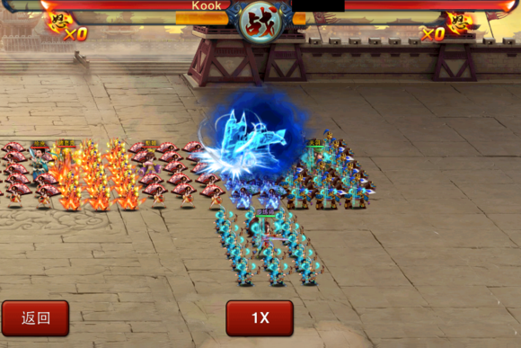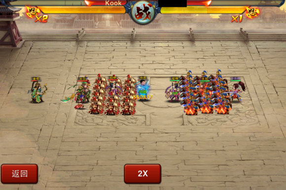 诸葛好猛,关羽还没有走到绕后,陆逊军团已经被完结了。。。这诸葛还是不错的。我方貂蝉只带了9个兵,方便横枪关羽军团可以直接输出