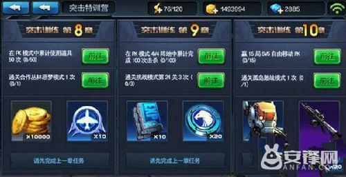 第九章完成100次击杀,自由移动人头较多,5V5完成任务更快。通关挑战24关,最低要求6W火力的枪械和1.6W的战力。