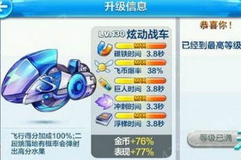炫斗战车技能是:飞行得分加成100%,二段跳有概率弹出高分水果。