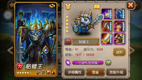 骷髅王自身的英雄特性让他在作为前排英雄有着不错的发挥,死而复生的特点可以骗很多的技能,强大的吸血光环可以让物理队有着很好的续航。在觉醒以后使队伍中的持盾英雄减免物理伤害,其实这个觉醒技能是偏弱的,除了效果单一,而且这个技能只能对持盾英雄起效,刀塔传奇中现有的持盾英雄只有恶魔巫师,沉默,月骑,电棍,奥丁之子还有魂匣龙骑,实话来说除了带月骑的内射队骷髅王的觉醒技能其实只能是对自身的生存有着小小的提升,但是其英雄的特性,新人能够尽早觉醒也是个不错的选择,毕竟T多总没有坏事。