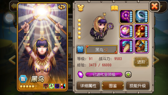 也许你们会很奇怪我把黑鸟排在第一位,但是现在版本中黑鸟的作用可以说无可替代的,在物理队横行的版本,黑鸟的存在可以说对制裁物理队有着神一般的作用,无脑的高伤奥蛋连发,超长时长的禁锢,大招对物理英雄的超高伤害都是现在对抗物理队急需的,除了竞技场,在副本中的表现也是非常不错的,像池子的冰龙,现在的物免9 10的通关。觉醒以后死亡为所有队友恢复大量的能力,可以说是个非常强力的觉醒技能,大家都知道关键时刻一个大的出现可以说是非常容易翻牌的,黑鸟的技能让残血翻盘的几率大大增加,但是黑鸟也是个比较难五星的英雄,新人们如果可以的话,在基本输出都觉醒完后,觉醒黑鸟是很不错的选择。