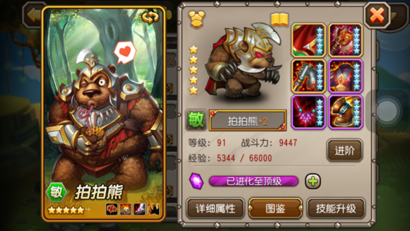 也是上个月的签到,按道理说,初始就觉醒的英雄都不会差,兽王这个英雄接触不多,不敢多言,希望以后有大神可以搭配出相应的队伍,觉醒技能简单粗暴,就是野兽系增加力量,现在野兽系的英雄只有刚背,牛,拍拍,白牛和小浣熊,这样看来也只能是自己受益了,喜欢的可以自行选择觉醒。