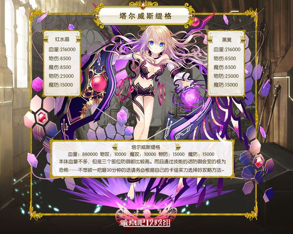 乖离性百万亚瑟王超妖塔尔威斯缇格是国庆期间的活动boss,相信大家应该是对于这位的数据和行动模式相关打法比较感兴趣,那么下面亲们就来和我一起详细的了解一下具体的内容吧!