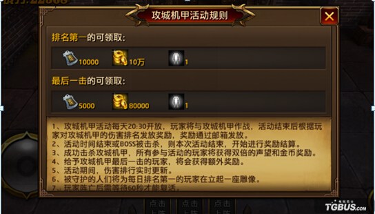 活动开始后开始计算公会击破龙脉的时间,攻城时间最短的16个公会根据击破时间来排名,晋级对决战。如果龙脉没有被击破,那么就按照每个公会的输出进行排名,然后开始对决战。攻城战结束后,会立即公布晋级名单,根据攻城战的名次,对前16名公会通过邮件的形式发放奖励。
