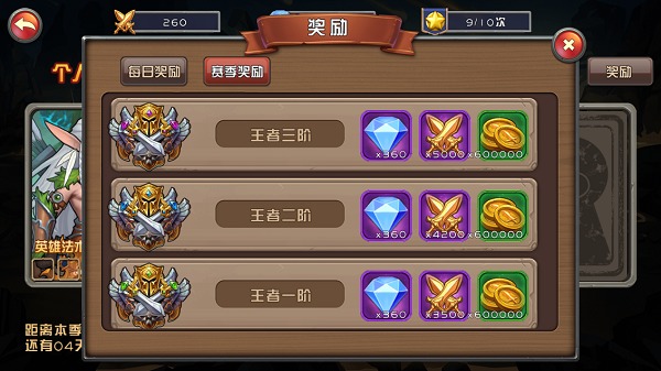 击败对手后就可以获得胜利,不同阶获取的奖励不同,奖励有体力,荣誉两种