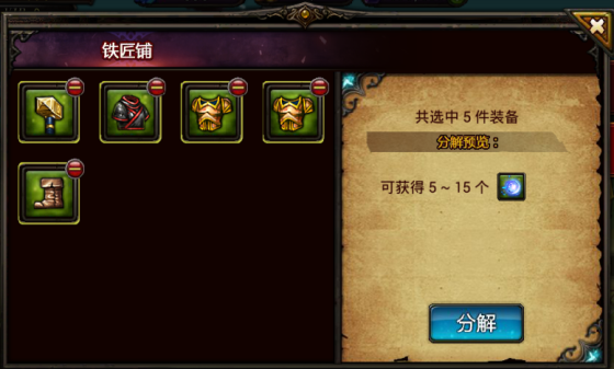 小编提醒大家一句,刷到的低级装备不要忙着清理,将它们拿到铁匠铺分解就可以得到稀缺的附魔材料哦!