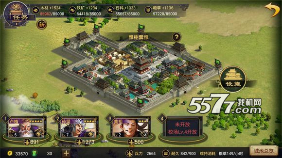 可以使用政令进行屯田、练兵,政令每小时回复3个有上限,每增加1个分城上线提高5个,我们可以直接使用政令去屯田..