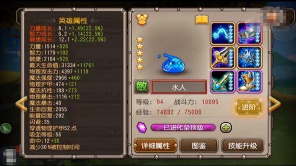 属性:诸王中橙2水人表现不佳一个重要原因是魔抗低的可怜,但是红0之后,再加上觉醒技能的加成,水人的魔抗大幅度提升,使得身板不再是纸一样。