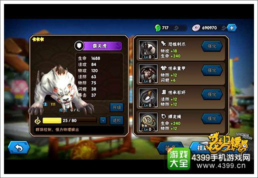 猛虎出山:进入战斗时,冲向敌方最前排目标,并对周围敌人造成物理伤害,并眩晕敌人2S。