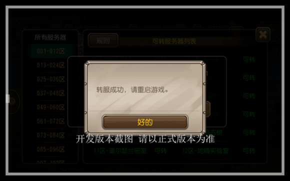 转服成功后,队长大大们重启游戏,即可在新的服务器进行游戏体验。