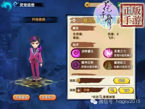 阡陌老师作为一个强力的辅助灵宠,灵宠飞升属性加成角色生命值非常可观。并且阡陌老师灵宠拥有着强大的辅助技能,尤其是他的圣君之力技能,给队友提供100%的伤害加成,这可以让战斗的胜利几率大大提高!