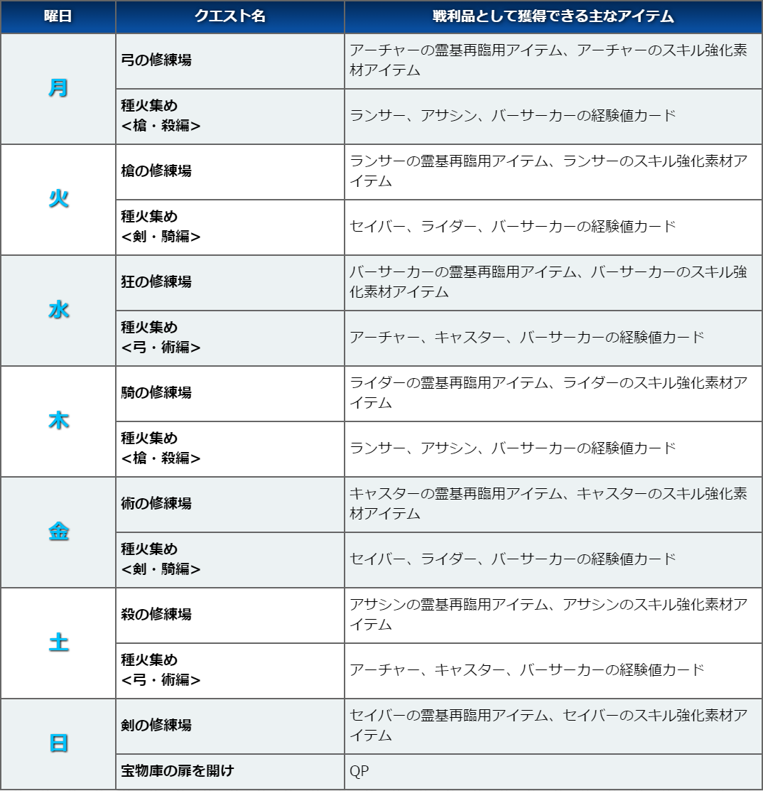 【リニューアル後の曜日クエスト】