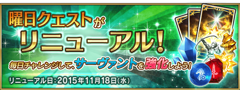 【予告】曜日クエストリニューアル!11月18日からスタート!