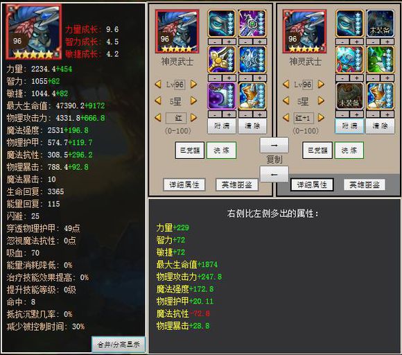神灵属性非常抢眼,96级即可进阶至红1,尽管魔抗低了72点,但对于他来说不痛不痒。