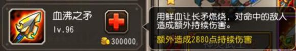 第二个提升比较大的技能就是血沸之矛,持续伤害可以叠加到三次。也就是说三次血沸之矛增加了额外的近9000点伤害。