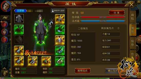 此外,鉴于杖职业自身比较脆皮的特点,玩家也可以直接放弃增强防御,选择堆加法术伤害、提高输出来获得战斗的胜利。这种简单粗暴的全智力加点方式比较适合PK型的玩家。