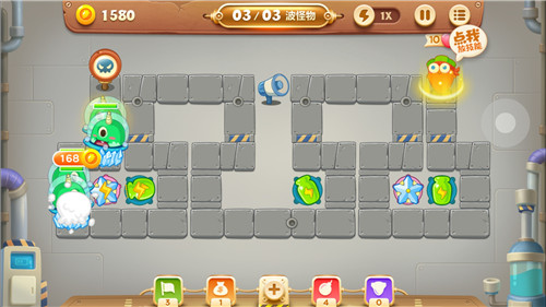 冰冻星的减速技能不但范围大,持续时间也长。整个地图中只要放上2-4个冰冻星,怪兽们就可以被全程减速啦~强力的减速效果使冰冻星成了当之无愧的百搭炮塔。无论是单体攻击还是范围攻击,攻击系炮塔只有和冰冻星搭配起来,实力才能得到最大发挥,是不是超级犀利呀~o