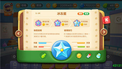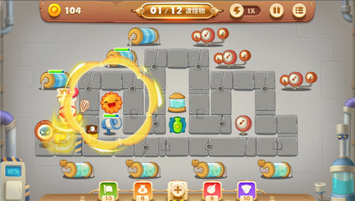 站在楼道上的小怪们很可怕的样子,而且行动也更迅速。面对这些疯狂的小怪,阿波没有办法,只有召集减速的炮塔兄弟们,冰冻星来报道、雪塔来报道、蘑菇来报道,让这些减速的兄弟们团结起来共同催眠这些小怪吧!让我们共同为其他兄弟塔的炮火准备再争取些时间