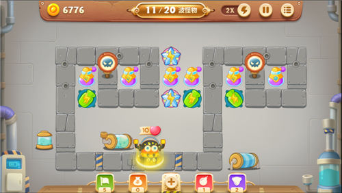 粉色的瓶身内存在的不是香气缭绕的香氛,而是毒气逼人的超级气体。萌新的萝卜丝们把毒气炮塔多安置在怪兽出口或者障碍物密集的地段。出门就被臭臭的毒气熏到,怪兽们一路上的霉运即将开始。虽然毒气炮塔只有毒气瓶一种,但实力十分酷炫。