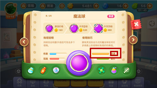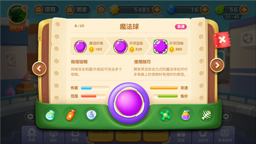 魔法球具有满格的攻击速度,同时还具有攻击多个目标的特点。攻击快、攻击数量多,怎么听怎么觉得高大上。魔法球是阿波灭怪和清理障碍物的绝对主力。魔法球建设在障碍物密集的地方或者行走环境复杂的路面上,再配合减速冰冻星和增益瓶子炮形成攻击炮群,满满的正能量让怪兽们甘愿献出自己的生命,让道具们甘愿献出自己的金币。碰到了魔法球,阿波觉得还是投降来的实在,既省时间又省能量。