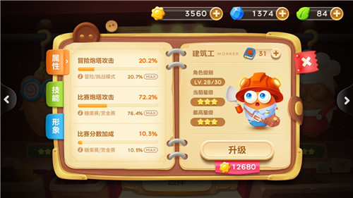 至于升级所需金币,当然是等级越高的角色所需金币就越多。不过金币这方面,只要萝卜丝们每天多玩几局糖果赛,完成每日一次的宝箱挑战,所获金币还是足够支撑角色升级所用哒~