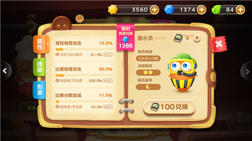 作为第一款月亮级别的角色,潜水员肯定得有点分量,不然怎么能突显出老大的地位呢!想要将潜水员升至满级需要三次进阶,每次都需要大量的角色碎片。但潜水员的角色收集关卡只有在冒险模式码头主题解锁后才能开启,而在任务和签到中也很少能获得潜水员的角色碎片。因此潜水员绝对是升级难度最大的,不过阿波偷偷告诉你,在“你选我送”中也可以获得潜水员角色碎片哦~