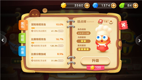 萌萌的外表,吃货的属性,这样的糕点师可是深受广大萝卜的喜爱。但糕点师身为唯一的四星角色,怎么会轻易让萝卜丝们得到呢~想要兑换糕点师需要100个角色碎片或者998个宝石,需要两次进阶才能升至满级,每次进阶同样需要大量的角色碎片。不过,糕点师的角色收集关卡在冒险模式解锁集市关卡后就可开启,再加上每天的任务和签到所得,各位萝卜丝们还是很有可能拥有一款满级的糕点师哒~