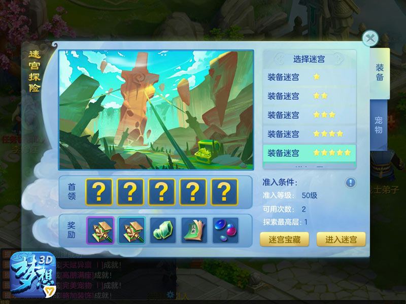 在《梦想世界3D》手游中,共有两种迷宫模式,分别是装备迷宫与宠物迷宫。在游戏里,迷宫可以掉落大量的宠物碎片及装备道具。所以各位侠士如果想提高自己的战斗实力或者摆摊发家致富,熟悉迷宫的玩法就十分必要了。