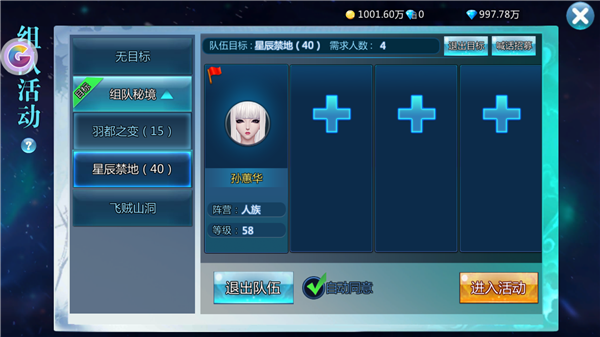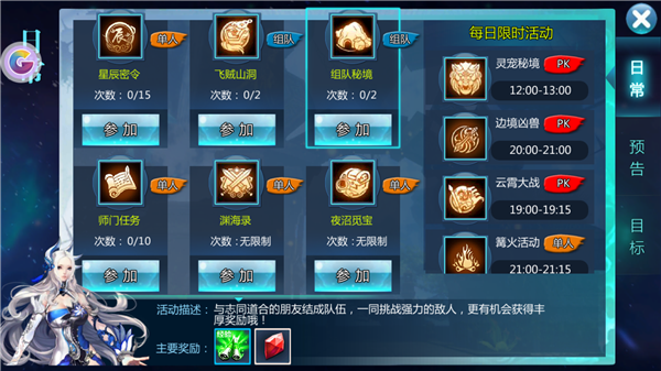 组队秘境在主界面【活动】界面内进入,每天都有一定的进入次数。