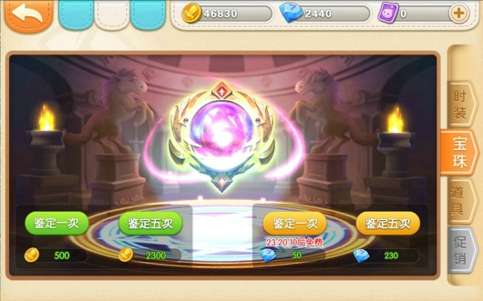 1.直接在商城的“宝珠”界面下鉴定宝珠,宝珠鉴定可以分为“钻石鉴定”和“金币鉴定”,二者效果相同。如果想一次性获取大量宝珠,可以点击“鉴定五次”,这样还会有一定的优惠。每隔24小时系统会赠送给我们一次免费鉴定宝珠的机会,大家不要忘了及时领取福利。