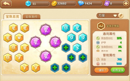 宝珠是战斗中的一种重要元素,可以极大的提升我们的战斗属性。手游中的宝珠主要分为3大类,即攻击宝珠、防御宝珠和特殊宝珠,不同类型的宝珠拥有不同属性的加成。攻击类宝珠可以增加攻击力、暴击伤害、暴击率或护甲穿透,防御类宝珠可以增加生命值、护甲、速度或怒气。特殊类宝珠虽然只拥有一种属性加成效果,但加成比例非常高。