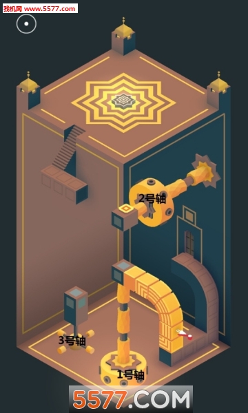 14.转动2号轴,人物踩按钮,再次转动2号轴,即可抵达平台,完成本关。