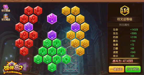 《弹弹岛2》的符文系统一共有30个槽位,红绿黄各10个,其中,红色主攻击,绿色主生命,黄色主防御。随着人物等级的提升,槽位会逐步开启。