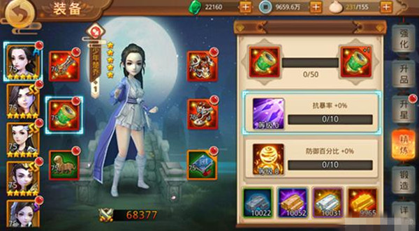 除了升级与升星,玩家在游戏中还可以对自己心仪的装备进行精炼,精炼后的装备除了可以提升攻击、防御、血量属性之外,还可以强化武将暴击、招架、抗暴等属性。