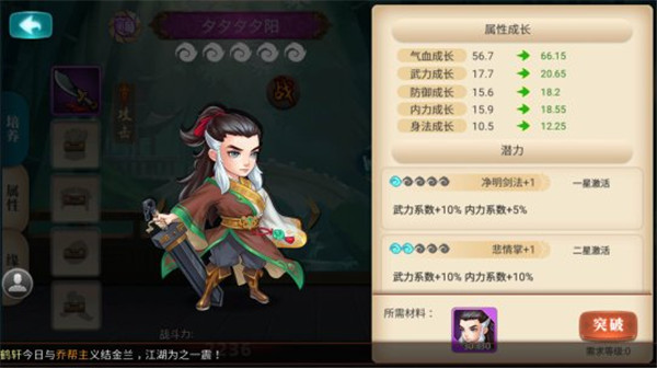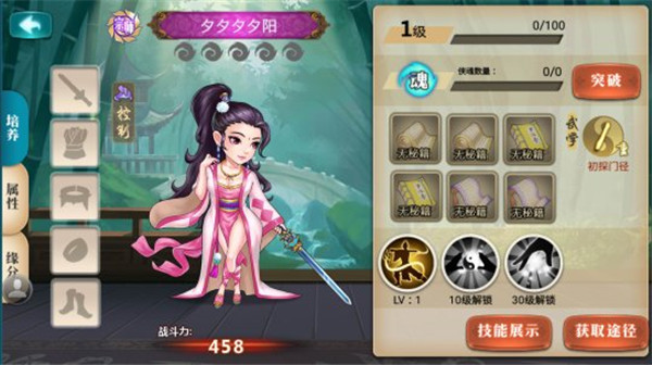游戏中有两种类型的人物——主角和武侠,他们都分为攻、防、控、疗四大职业,而不同品阶的武侠则从酒馆中抽出,之所以设置了主角。那自然是因为其要比武侠人物更加强力。