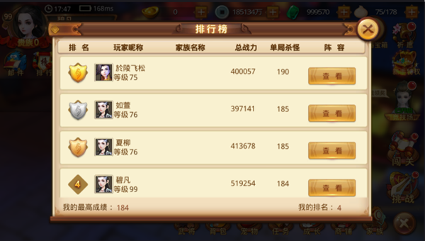 每日的挑战次数为2次,在排行榜中可以查看其它玩家的排名与阵容。