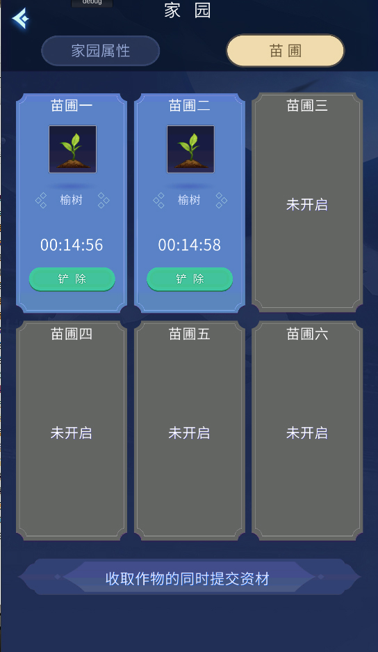 3.点击苗圃可以收取和种植家园资材,收取后会直接提交资材。