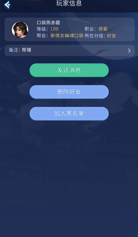 5.点击头像可以弹出好友信息,同步端游分组和备注,方便玩家聊天。
