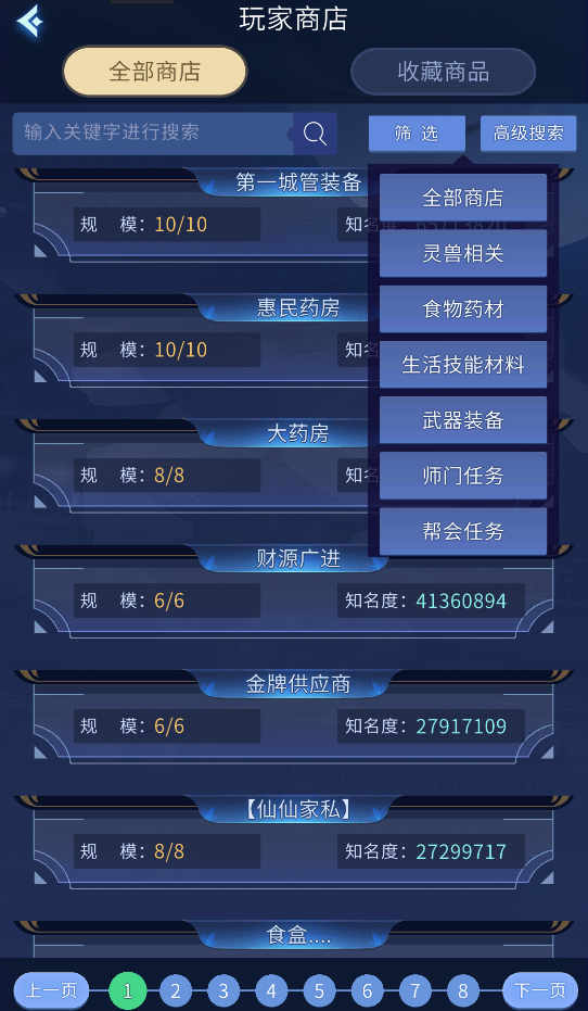 3.点击筛选可以通过设置店铺类型,更方便物品的搜索。