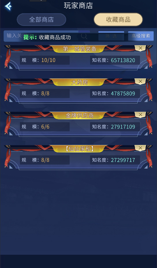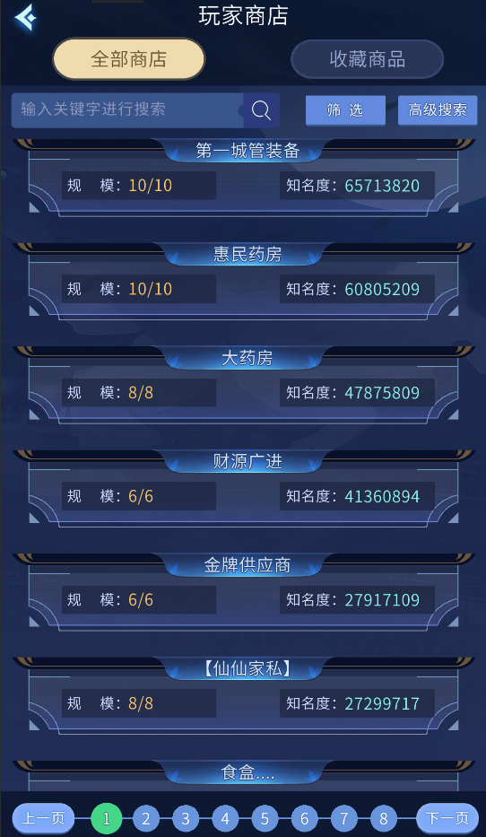 2.易市界面显示各个店铺,在端游收藏过的店铺也会优先放置在前面。