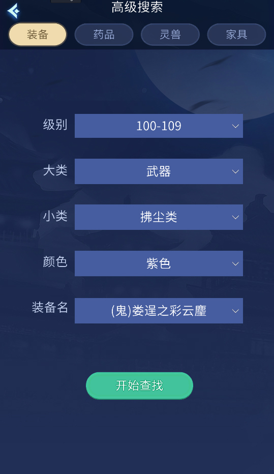 4.高级搜索可以搜索指定的装备、药物、灵兽等。