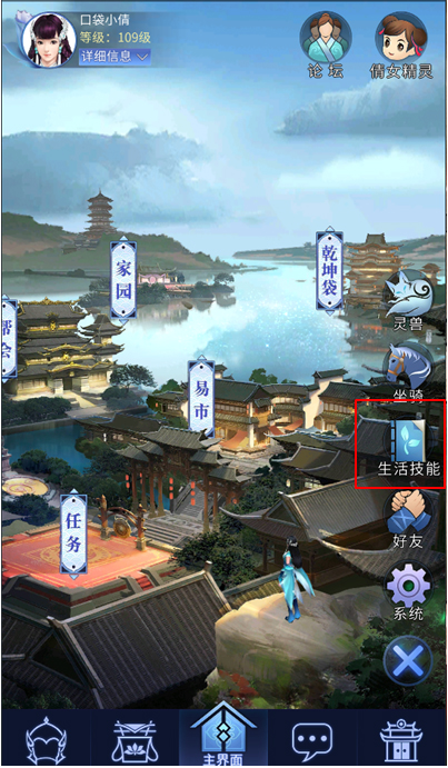 1.口袋版支持生活技能原材料的收取,玩家可以随时随地收取原材料,点击主界面弹出的生活技能按钮可以进入生活技能界面。
