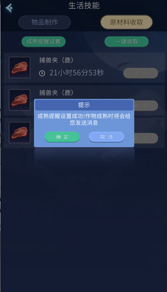 3.对于还未成熟的作物,可以设置成熟提醒,作物成熟后会自动推送消息通知玩家收取(限口袋版登陆使用时)。