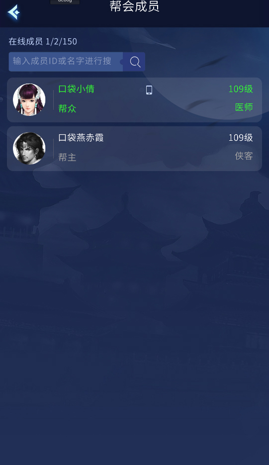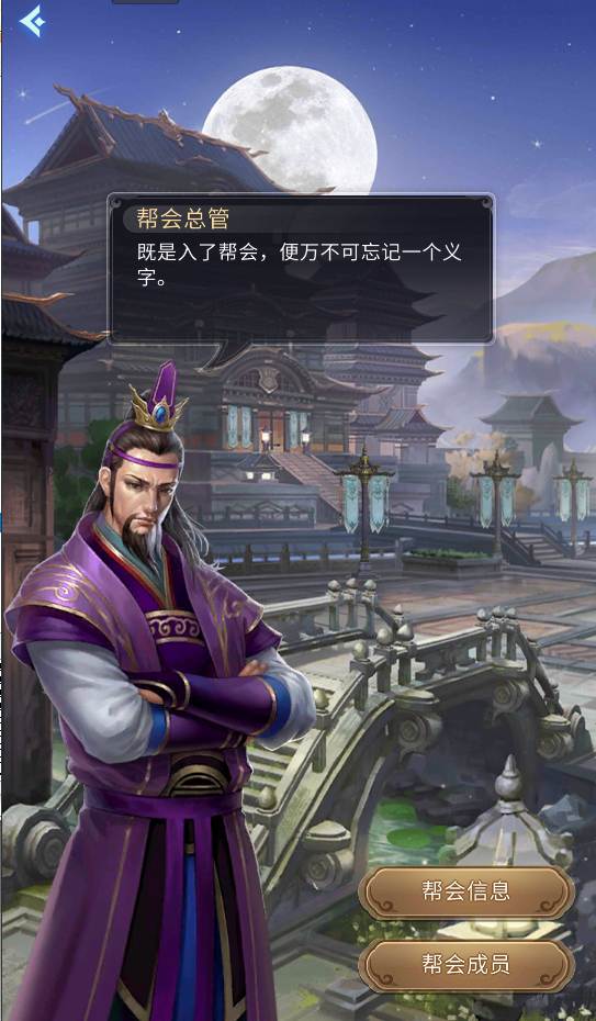 3.在主界面点击帮会,有帮会的玩家可以查看帮会信息、成员信息;没有帮派的玩家可以在这个页面申请帮会。