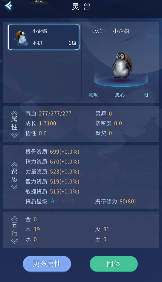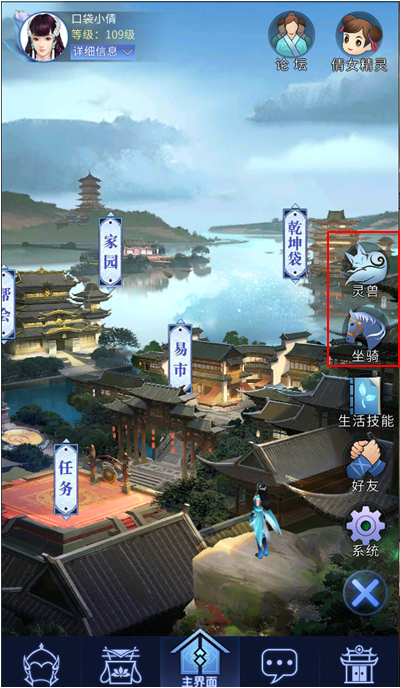 5.点击主界面呼出的灵兽和坐骑按钮可以查看属性。
