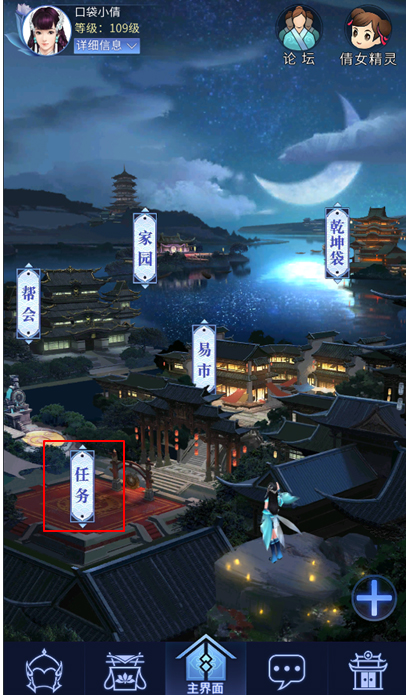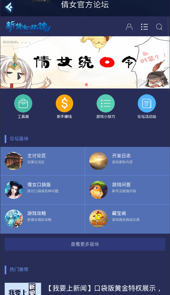 6.点击主界面右上方的论坛和倩女精灵图标可以进入官方论坛和打开倩女精灵。