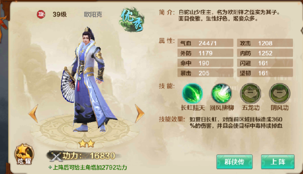 组队申请确认后,玩家会在副本门口集合,当满足5-10人条件后,队长即可开启副本战斗。进入副本后,上来照常先收拾一票虾兵蟹将,再熟悉不过的《射雕》秀技能time,此处直接一笔带过。消灭了喽喽兵,一号BOSS白驼山庄的少庄主欧阳克就出现在你眼前,一副欠揍的样子,对于人多势众的你来说,肯定是二话不说直接开打。